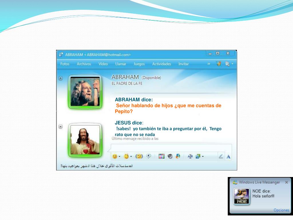 JESUS dice: Bueno, seguiremos hablando dentro de un rato, porque con Noe …. Tus sabes la edadjajá jajá ABRAHAM dice:Esta bien mi Señor, seguiremos en contacto. Nos vemos