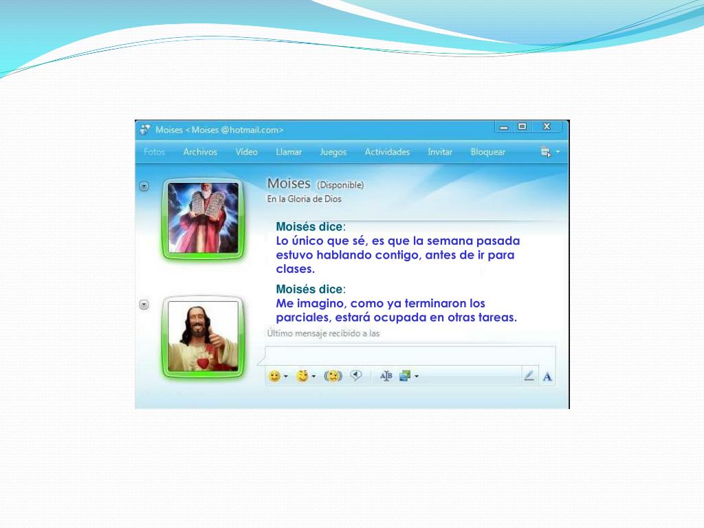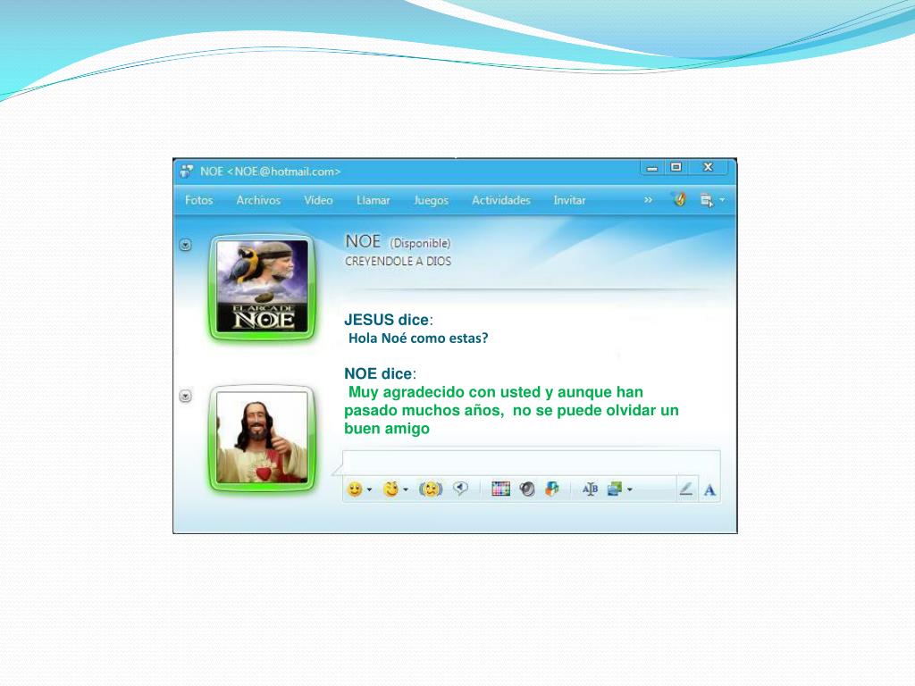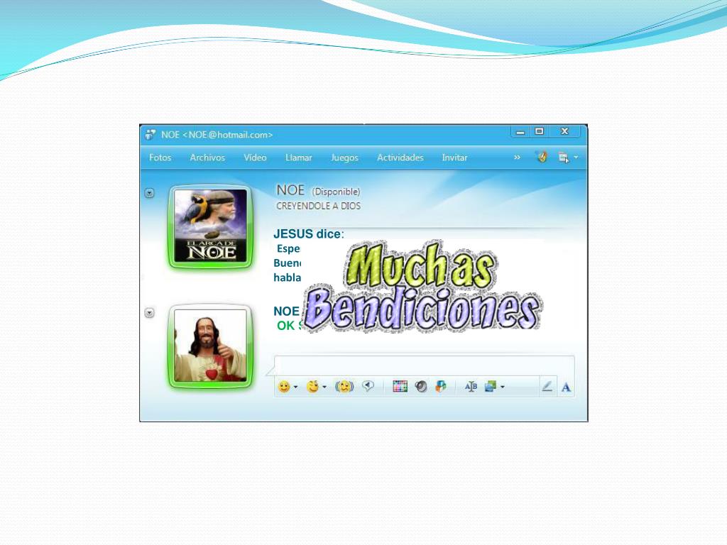 JESUS dice:OK. sigue ejercitándote, jajá jajáseguimos hablando Moisés dice:Listo Señor!!! es un placer hablar contigo.