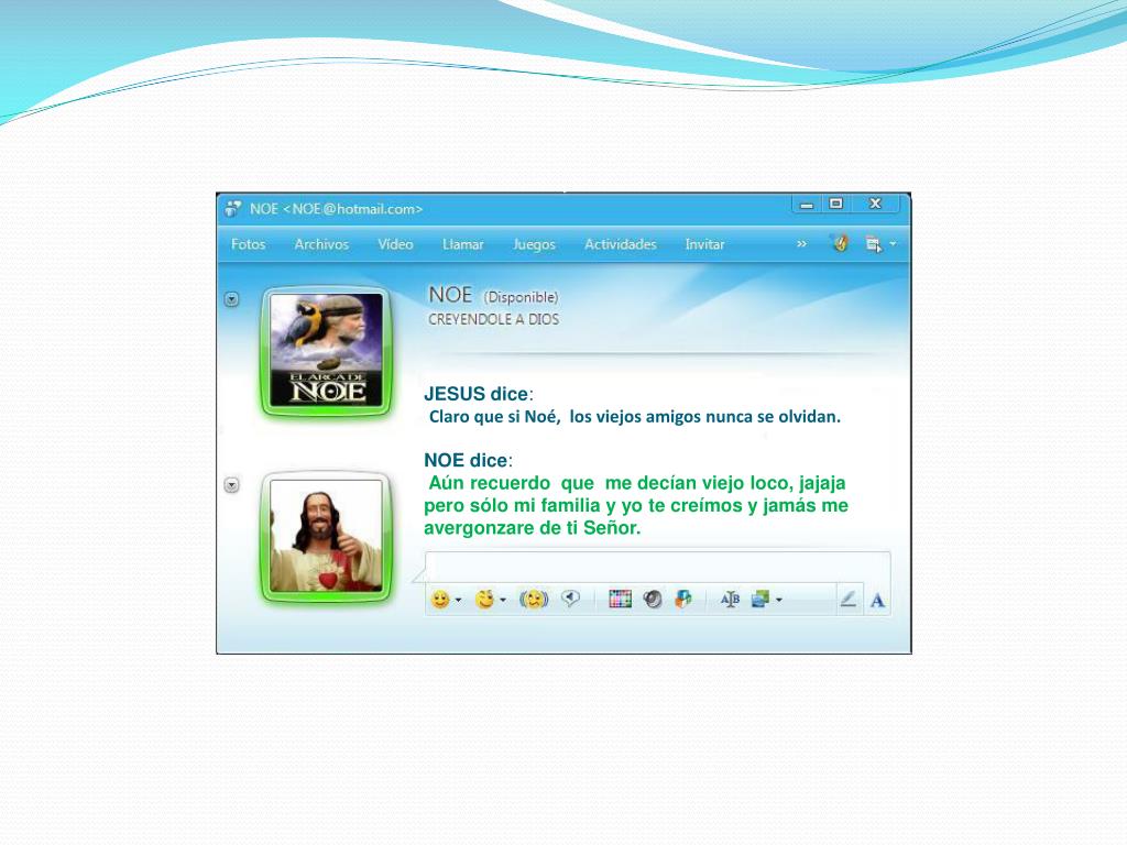JESUS dice:Claro que si Noé, los viejos amigos nunca se olvidan. NOE dice: Aún recuerdo que me decían viejo loco, jajajapero sólo mi familia y yo te creímos y jamás me avergonzare de ti Señor.