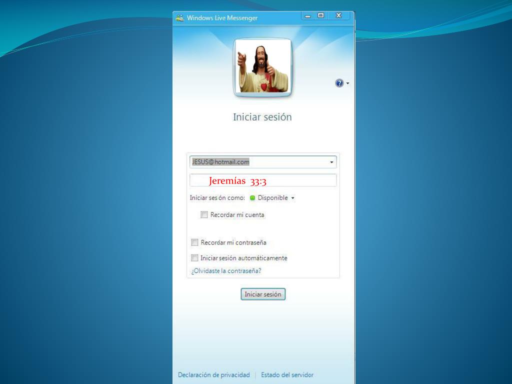 Messenger de Jesús. Jeremías 33:3. Conectando…. JEREMIAS 33:3. JESUS dice : H ola Moisés como estas ?. Moisés dice : Muy bien Señor, Haciendo un poquito de ejercicio con las tablas. jijijijijj. JESUS dice : TU SIEMPRE TAN GRACIOSO JAJAJAJA .