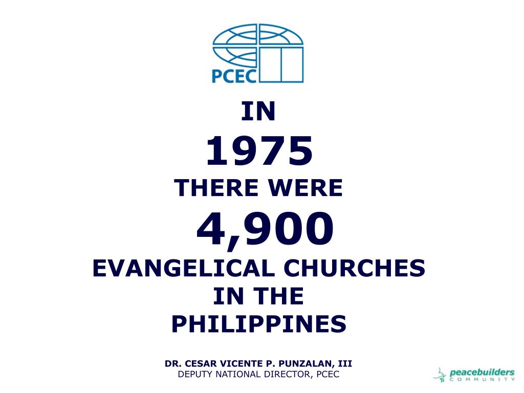 IN 1975 THERE WERE 4,900 EVANGELICAL CHURCHES IN THE PHILIPPINES DR. CESAR VICENTE P. PUNZALAN, III DEPUTY NATIONAL DIRECTOR, PCEC