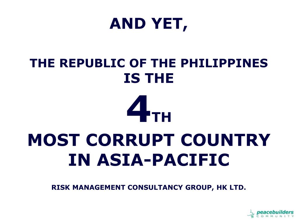 AND YET, THE REPUBLIC OF THE PHILIPPINES IS THE 4TH MOST CORRUPT COUNTRY IN ASIA-PACIFIC RISK MANAGEMENT CONSULTANCY GROUP, HK LTD.