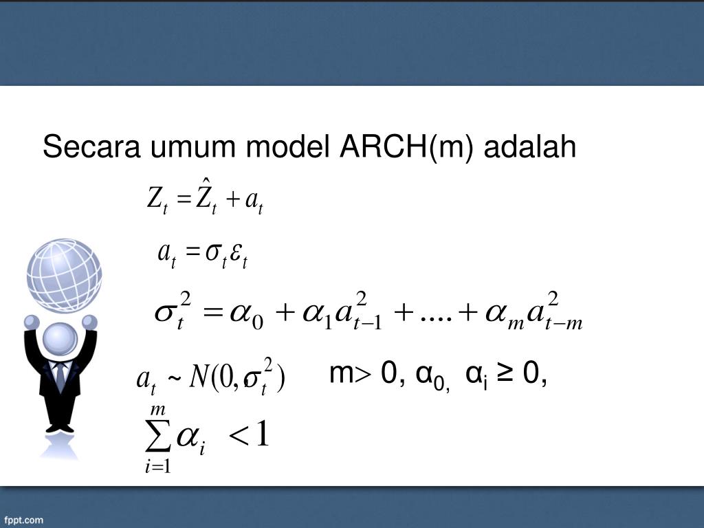 Secaraumum model ARCH(m) adalah , m 0, α0, αi ≥ 0,