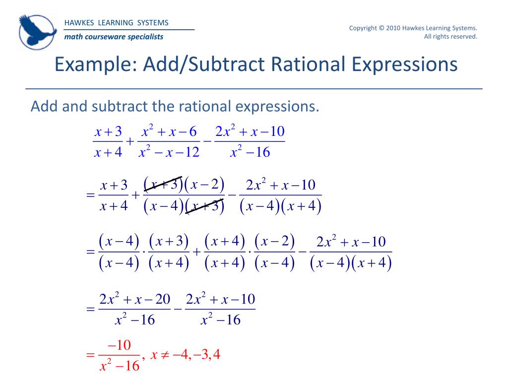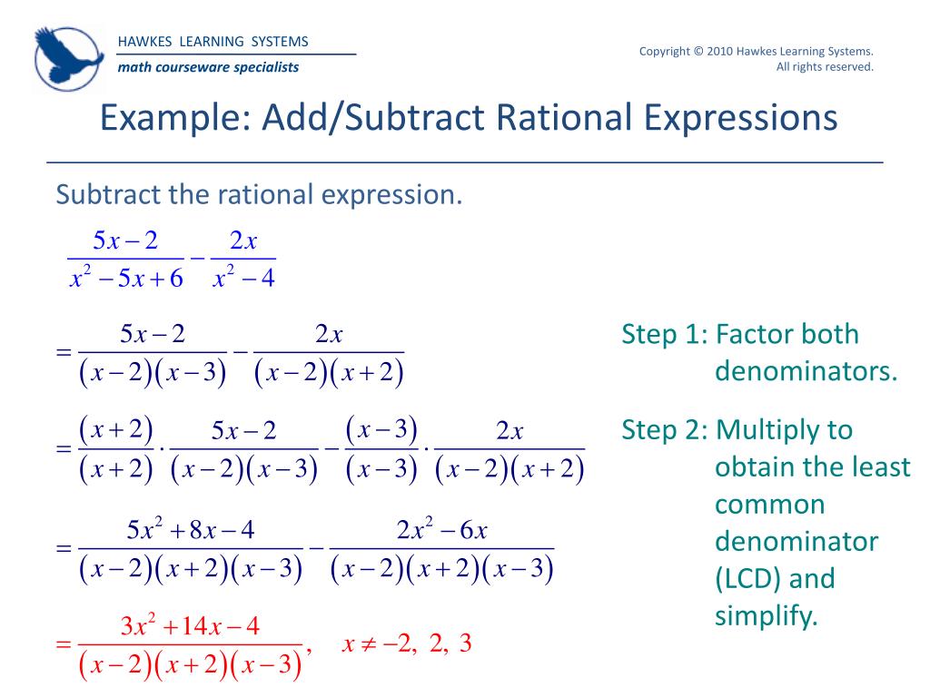 Example: Add/Subtract Rational Expressions Add and subtract the rational expressions.