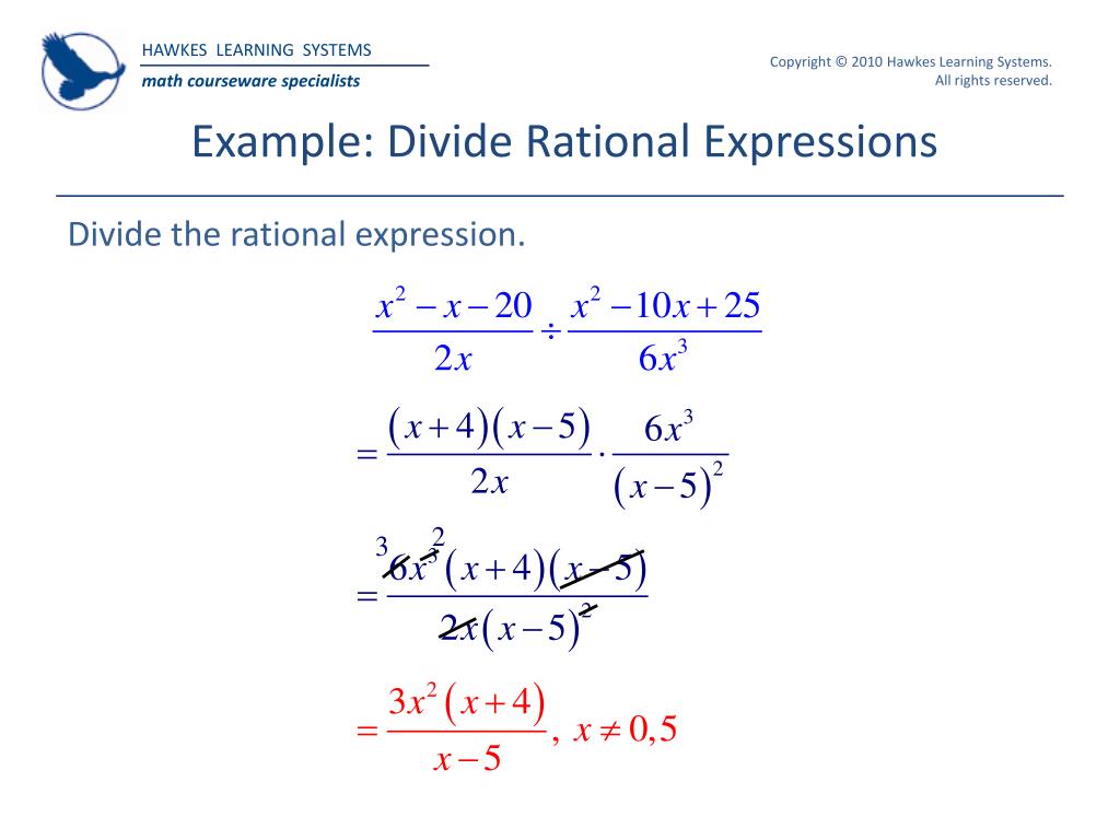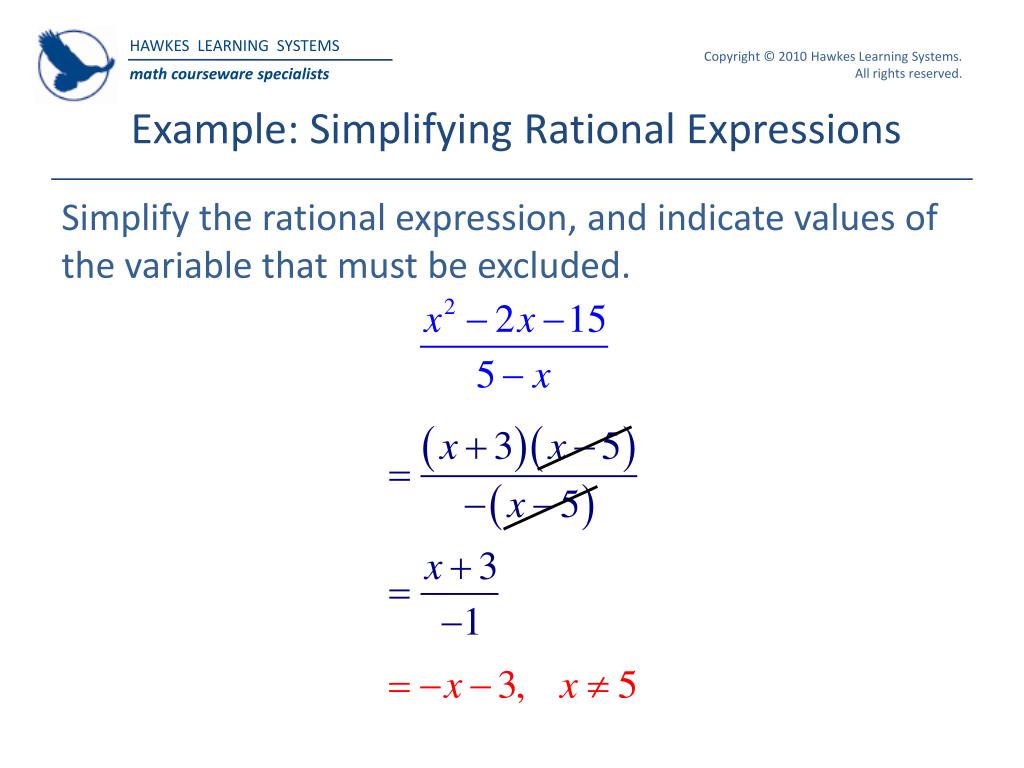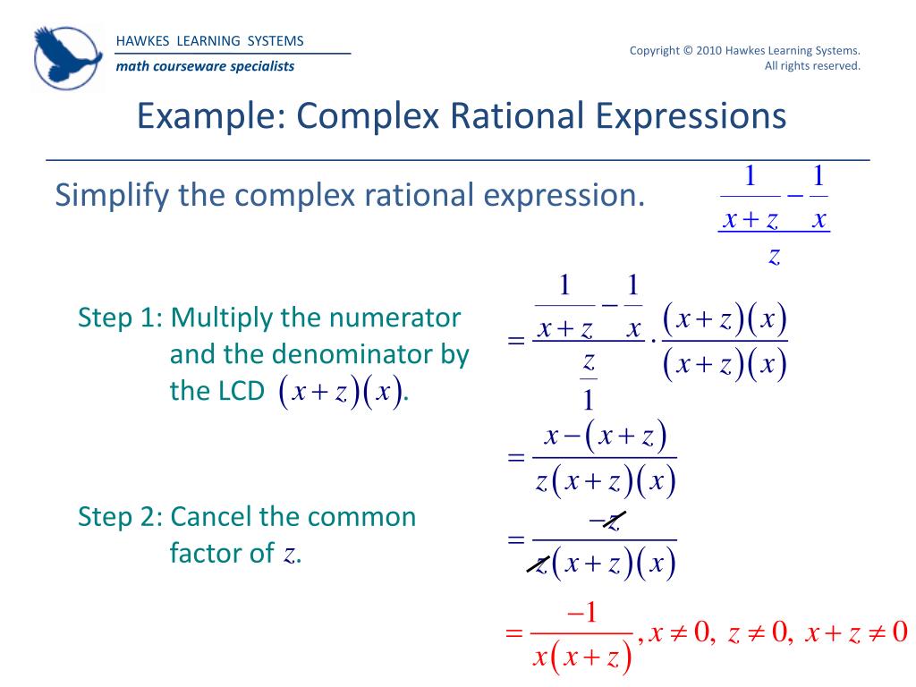 Hawkes Learning Systems: College Algebra 2.5: Rational Expressions and Equations