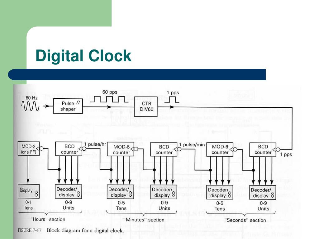 Counter Applications • Frequency counter: a circuit that measures and displays the frequency of a signal. • Digital clock.