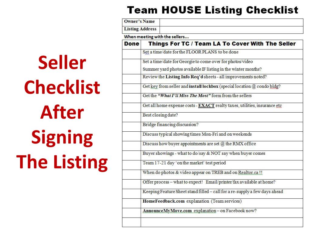 Communicate With The Seller • Use a Listing Checklist at your meeting to ensure the seller is knowledgeable about what to expect once their home goes on the market • Showing feedback www.HomeFeedback.com • Weekly or bi-weekly seller update calls • Email and blog market updates • Make sure seller knows your goal is to get them the highest price AND that you’re different from all the other agent !!