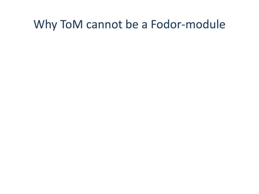 Why ToM cannot be a Fodor-module • According to Fodor (1983, 2000) deciding what we believe is an archetypal “central” process ?