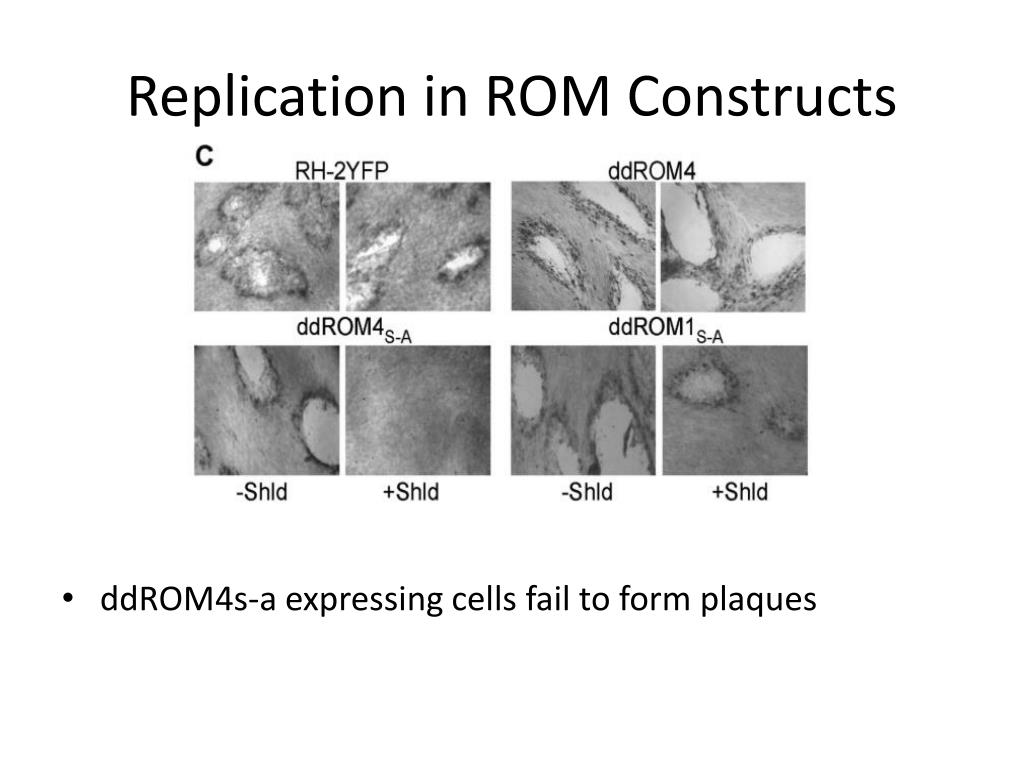 Replication in ROM Constructs • ddROM4s-a expressing cells fail to form plaques