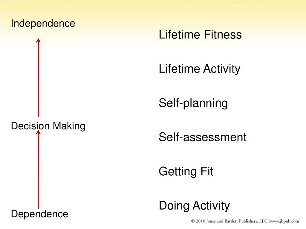 Lifetime Fitness Lifetime Activity Self-planning Self-assessment Getting Fit Doing Activity Independence Decision Making Dependence