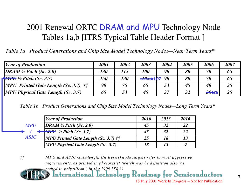 107 28 MPU/ ASIC 2001 Renewal ORTC DRAM and MPU Technology Node Tables 1a,b [ITRS Typical Table Header Format ]