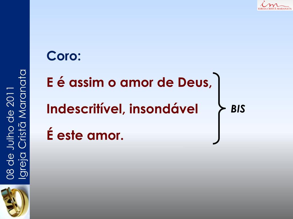Coro: E é assim o amor de Deus, Indescritível, insondável É este amor. BIS 08 de Julho de 2011 Igreja Cristã Maranata