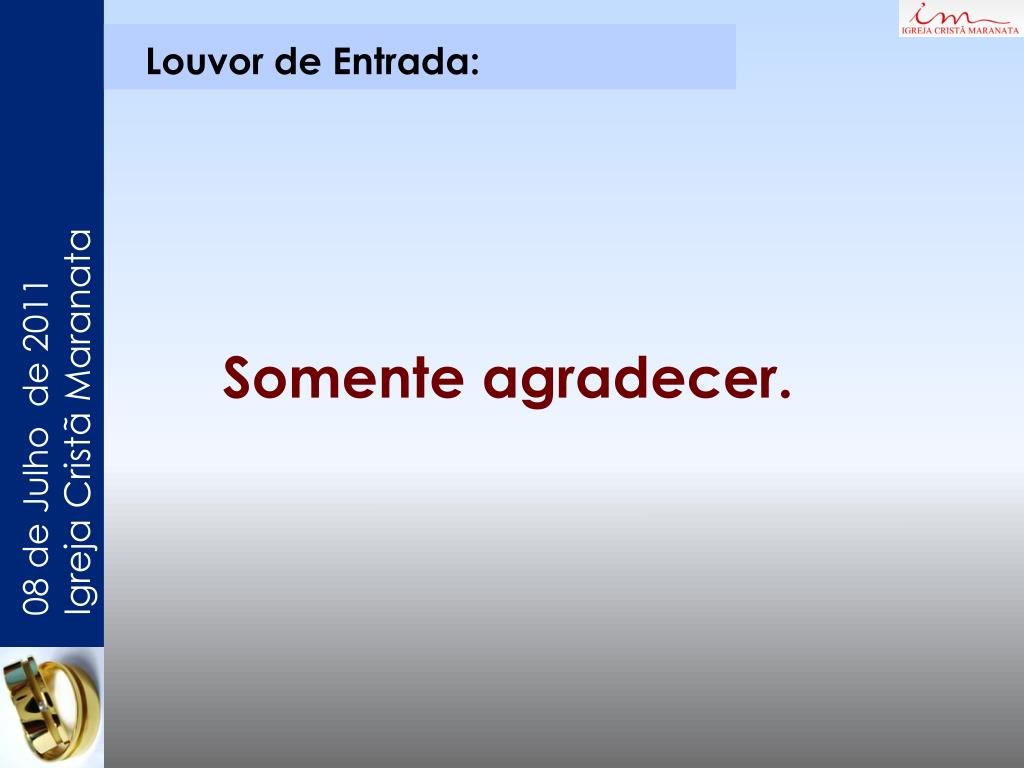 Louvor de Entrada: Somente agradecer. 08 de Julho de 2011 Igreja Cristã Maranata