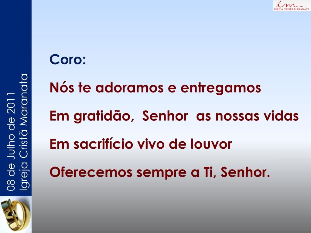 Coro: Nós te adoramos e entregamos Em gratidão, Senhor as nossas vidas Em sacrifício vivo de louvor Oferecemos sempre a Ti, Senhor. 08 de Julho de 2011 Igreja Cristã Maranata