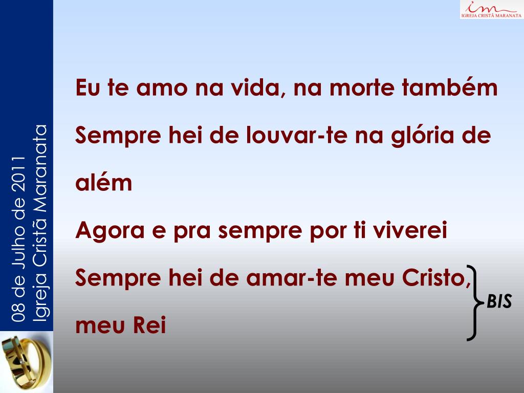 Eu te amo na vida, na morte também Sempre hei de louvar-te na glória de além Agora e pra sempre por ti viverei Sempre hei de amar-te meu Cristo, meu Rei 08 de Julho de 2011 Igreja Cristã Maranata BIS