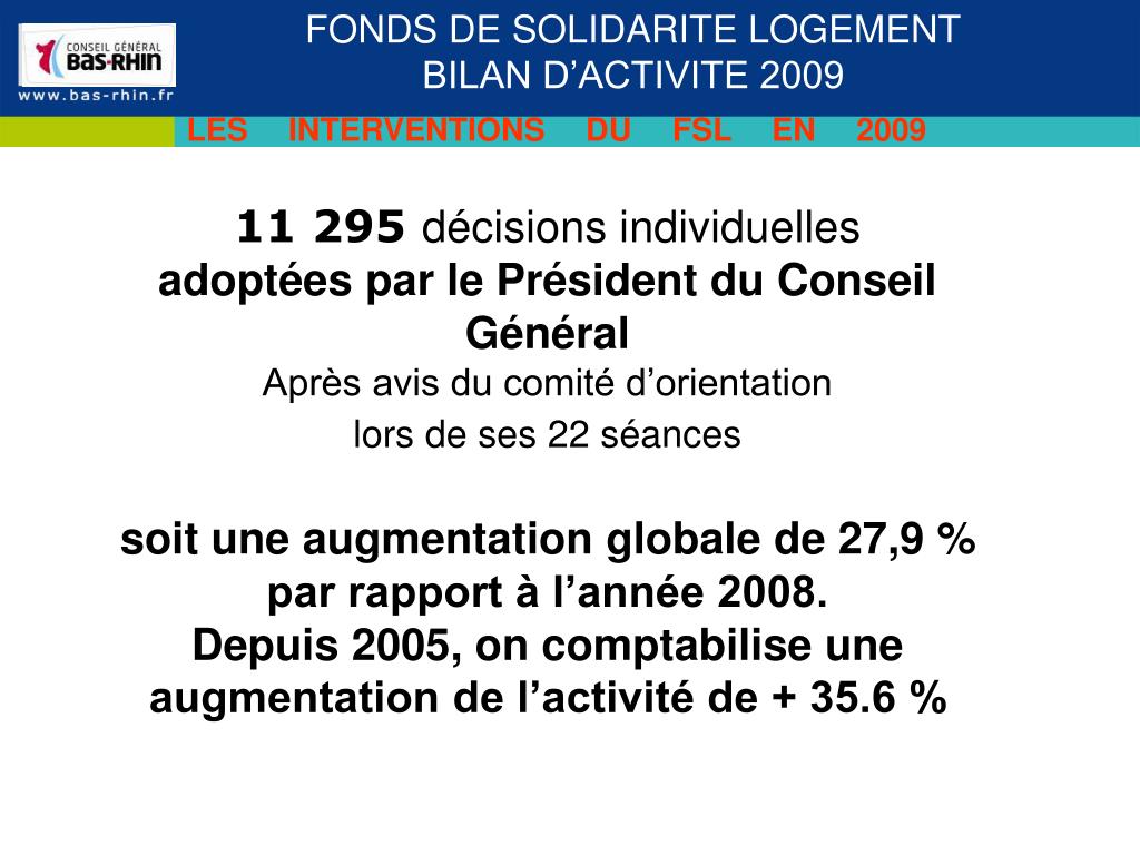 FONDS DE SOLIDARITE LOGEMENT BILAN D’ACTIVITE 2009. FONDS DE SOLIDARITE LOGEMENT BILAN D’ACTIVITE 2009.