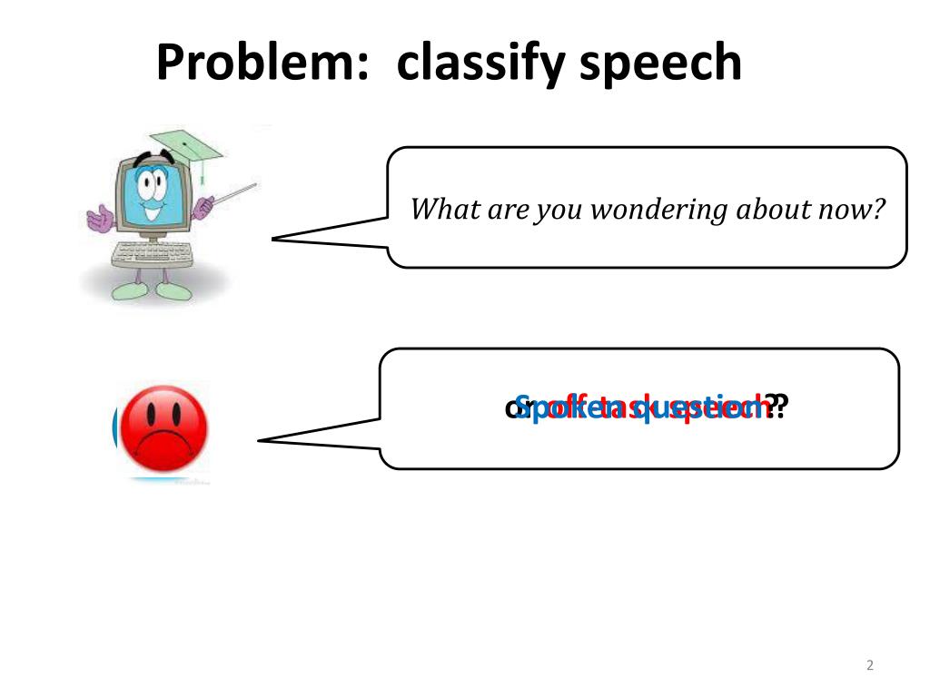 Problem: classify speech What are you wondering about now? or off-task speech? Spoken question?