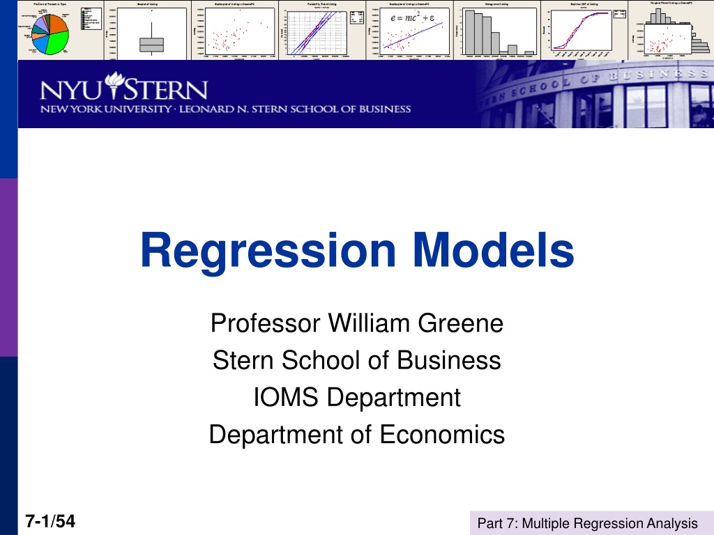 Regression Models. Professor William Greene Stern School of Business IOMS Department Department of Economics. Regression and Forecasting Models. Part 7 – Multiple Regression Analysis. Model Assumptions.