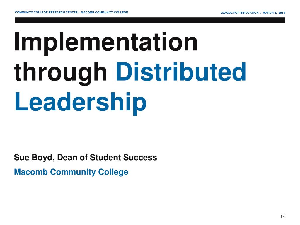 Implementation through Distributed Leadership Sue Boyd, Dean of Student Success Macomb Community College
