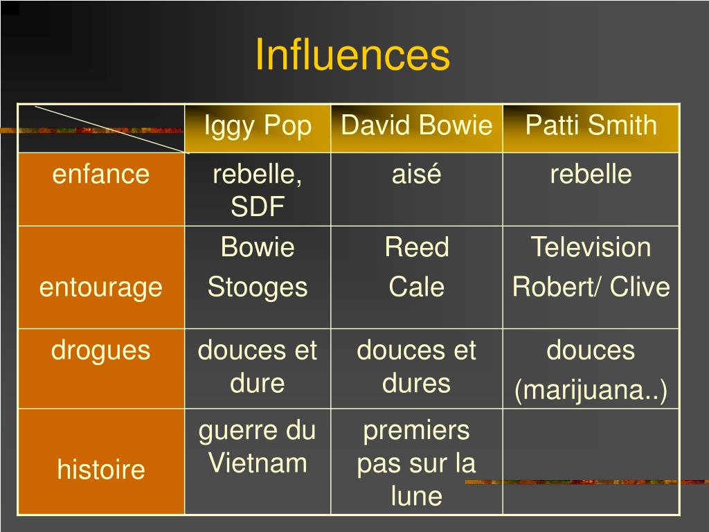 ROCK GALERIE. DESS Ingénierie Multilingue Aleksandra Krul DESS Traductique et Gestion de l’Information Anna Srodon Corradi CRIM 2002-2003. Iggy Pop Patti Smith David Bowie . « Rimbaud à New York ». « L’Iguane à Détroit » .