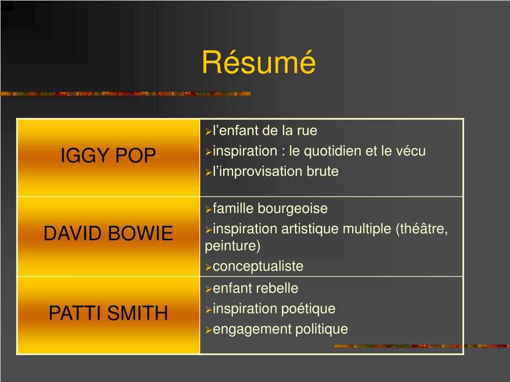 Iggy Pop Patti Smith David Bowie « Rimbaud à New York » « L’Iguane à Détroit » « Le Caméléon »