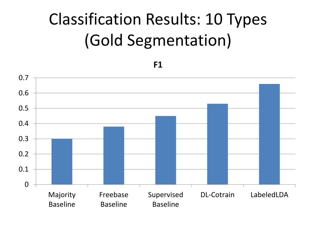 Classification Results: 10 Types(Gold Segmentation) Precision =0.85 Recall=0.24