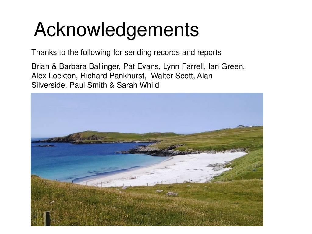Acknowledgements Thanks to the following for sending records and reports Brian & Barbara Ballinger, Pat Evans, Lynn Farrell, Ian Green, Alex Lockton, Richard Pankhurst, Walter Scott, Alan Silverside, Paul Smith & Sarah Whild