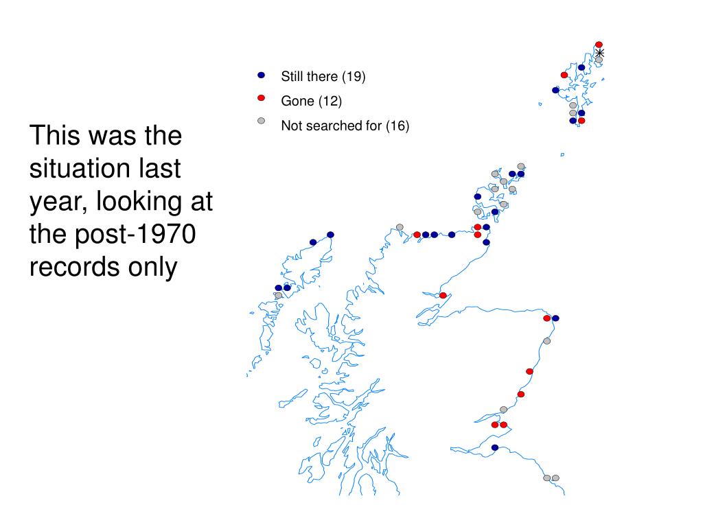 Still there (19) Gone (12) Not searched for (16) This was the situation last year, looking at the post-1970 records only
