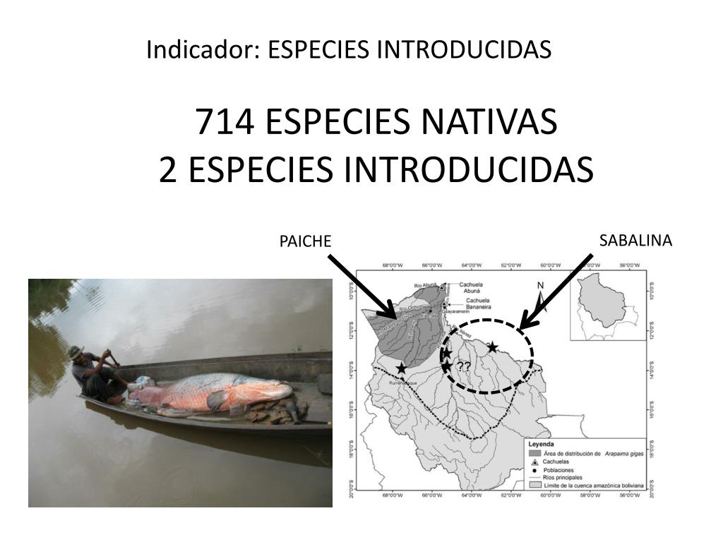 Indicador: ESPECIES INTRODUCIDAS 714 ESPECIES NATIVAS 2 ESPECIES INTRODUCIDAS SABALINA PAICHE