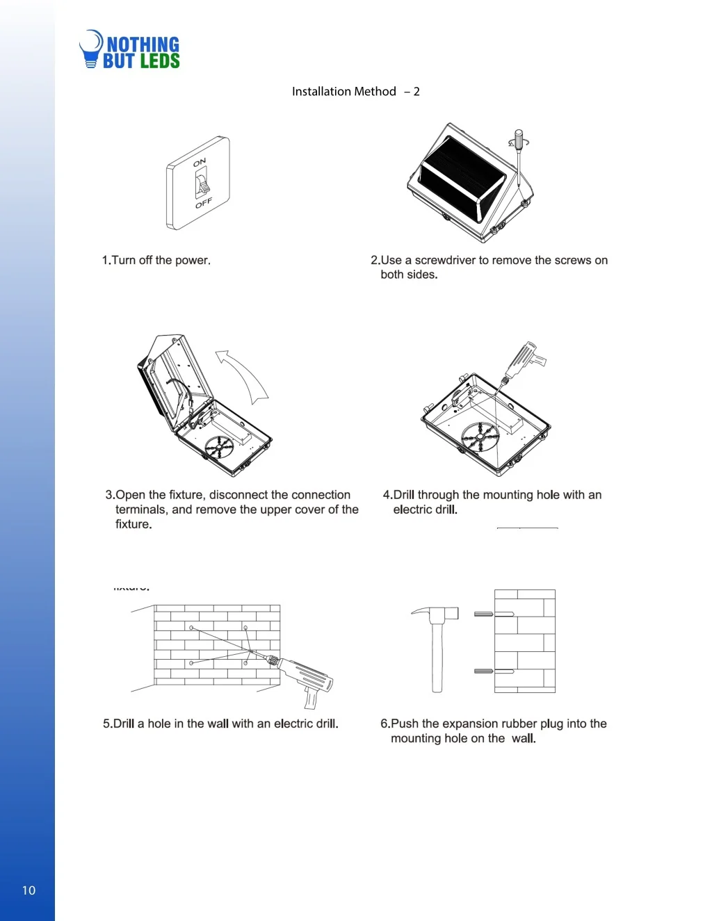LED Wall Pack Nothing But LEDS wall pack is the newest and feature rich product of 2021 offering a traditional design for theinnovative LED Technology providing up to 145 lumensper watt efficacy. It offers three wattages selection withenergy-efficient LED technology and optionalinstallation accessories including surge- protector,motion sensor, wire guard, shield, and an emergencybackup. LED wall pack comes with a built- in photocell and isavailable in die cast aluminium housings with apolycarbonate lens to stand up for many years ofpunishing environmental conditions. Product Features Operating temperature: 40°C to 50°C Durable diecast aluminum housing Built-in photocell Enclosure provides a water-tight seal making it suitable for outdoor application Integral LED driver ( 60W isolated driver and 120W non-isolated driver), eliminates the need for an external driver or ballast . Up to 145 lumens per watt Three selectable wattage Complies with UL safety regulations and is DLC5.1 listed High Quality and Efcacy Lumiled 2835 chips This product is IP65 rated, therefore, it is waterproof, sealed and gasketed wire Universal operation at 120277Vac 50-60Hz Environment friendly with no mercury Easy to install and operate, with instant and no humming Energy saving, long lifespan 1