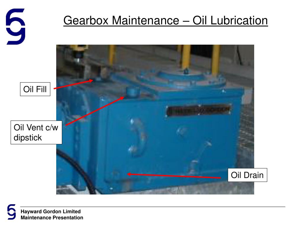 Gearbox Maintenance - Lubrication To ensure long gearbox life it is critically important to properly monitor lubricant quality and quantity and maintain lubricating schedule. All MB units are splash oil lubricated. The oil is picked up by the revolving elements and distributed to all bearings (except grease lubricated low speed shaft bearings) and gear meshes. Oil and grease lubrication is addressed separately in this training.