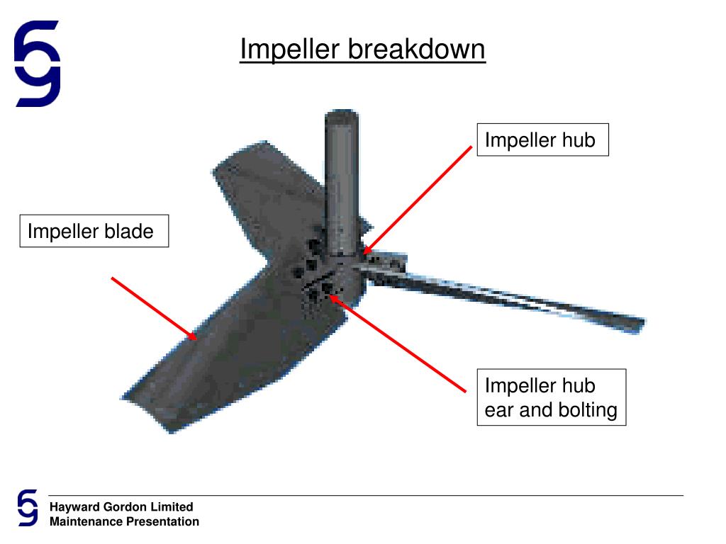 Wet End Maintenance - Impeller Blade to Hub arrangement • Blades placed on front side of hub (Blade is ‘pushed’ through the water) • Hex Head cap screws with washers and double nutting ensure strong clamping result between blade and hub.