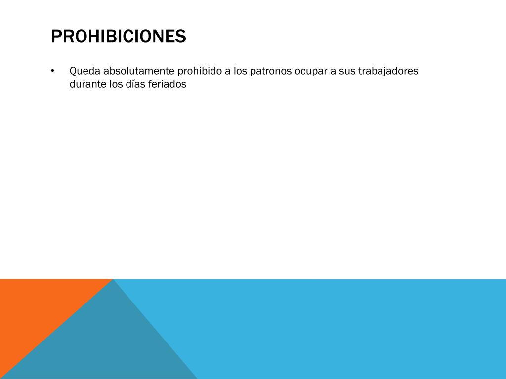 prohibiciones • Queda absolutamente prohibido a los patronos ocupar a sus trabajadores durante los días feriados