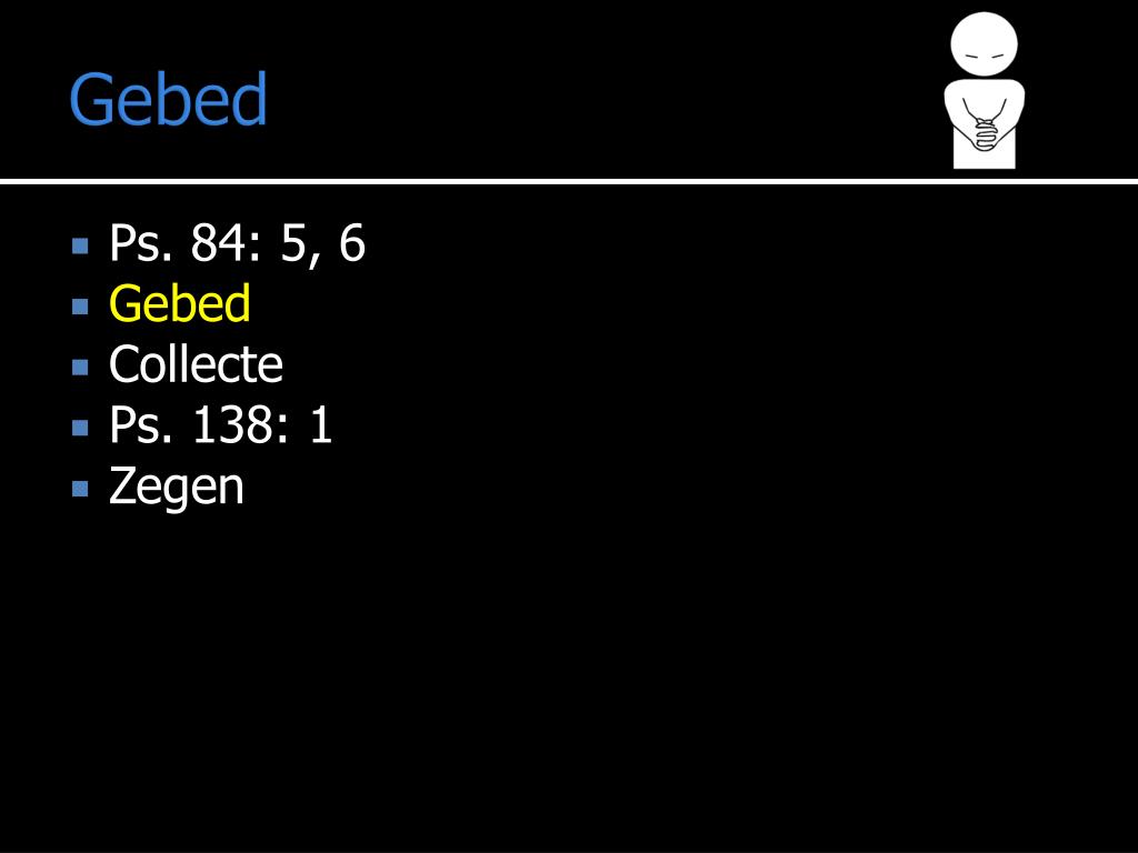 Gebed • Ps. 84: 5, 6 • Gebed • Collecte • Ps. 138: 1 • Zegen