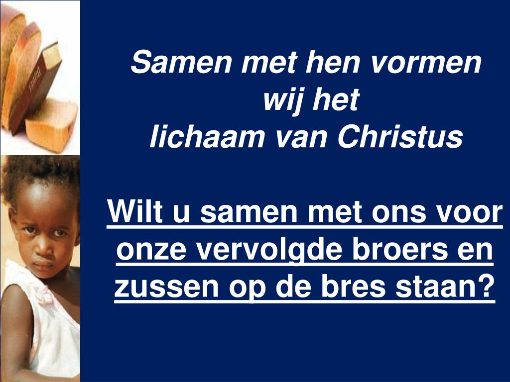 Samen met hen vormen wij het lichaam van Christus Wilt u samen met ons voor onze vervolgde broers en zussen op de bres staan?