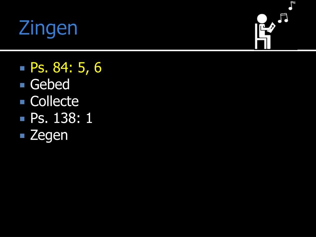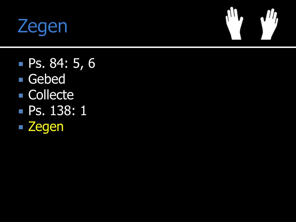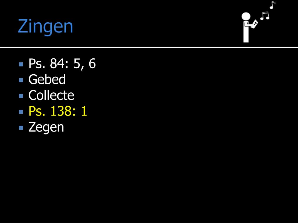Zegen • Ps. 84: 5, 6 • Gebed • Collecte • Ps. 138: 1 • Zegen