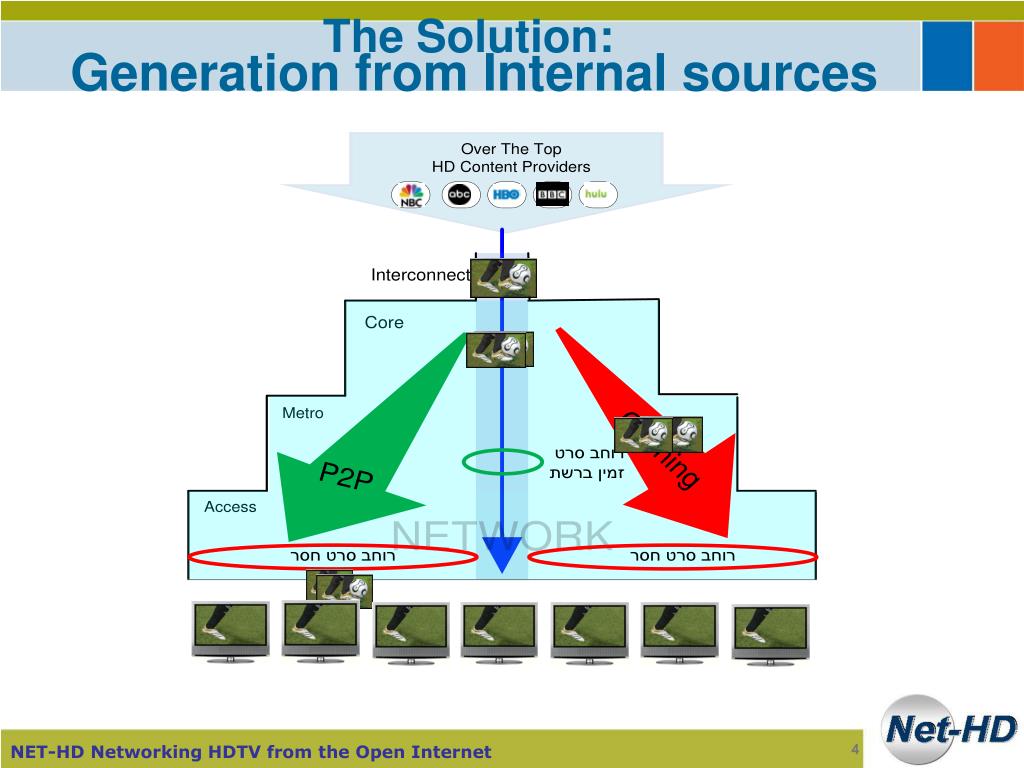 The NET-HD Solution • Enable HD OTT Video services by increasing the effective infrastructure capacity by x 1000 without the need to upgrade current infrastructure