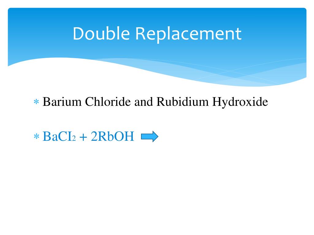 Double Replacement Barium Chloride and Rubidium Hydroxide BaCI2 + 2RbOH