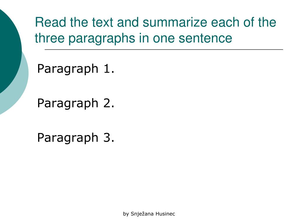 Read the text and summarize each of the three paragraphs in one sentence Paragraph 1. Paragraph 2. Paragraph 3. by Snježana Husinec