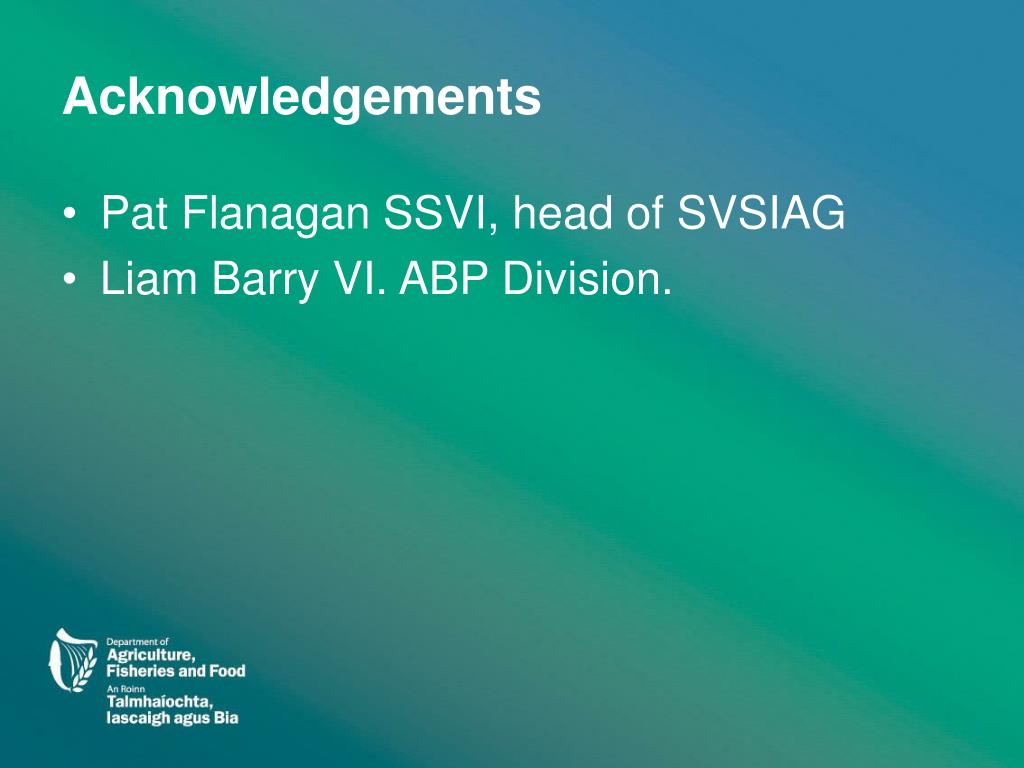 Acknowledgements • Pat Flanagan SSVI, head of SVSIAG • Liam Barry VI. ABP Division.