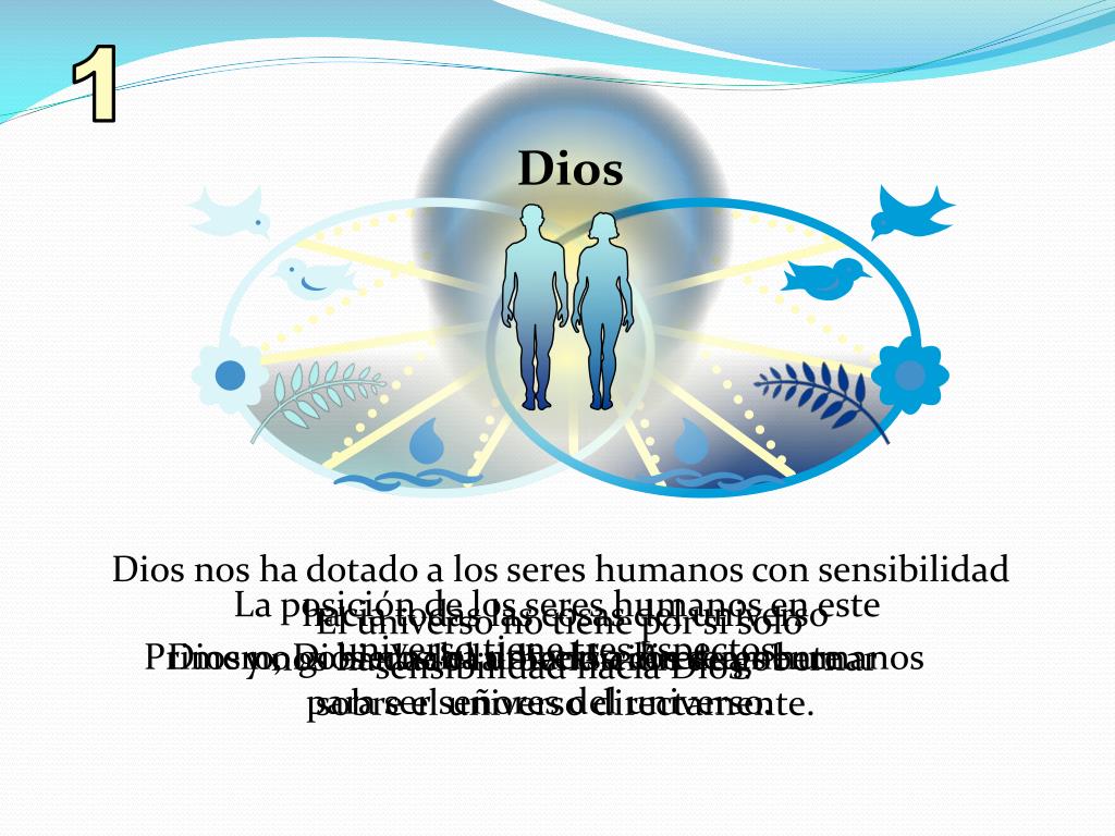 1 Dios Dios nos ha dotado a los seres humanos con sensibilidad hacia todas las cosas del universo y nos ha dado la bendición de gobernar sobre el universo directamente. La posición de los seres humanos en este universo tiene tres aspectos. El universo no tiene por si solo sensibilidad hacia Dios. Primero, Dios nos ha dotado a los seres humanos para ser señores del universo. Dios no gobierna el universo directamente
