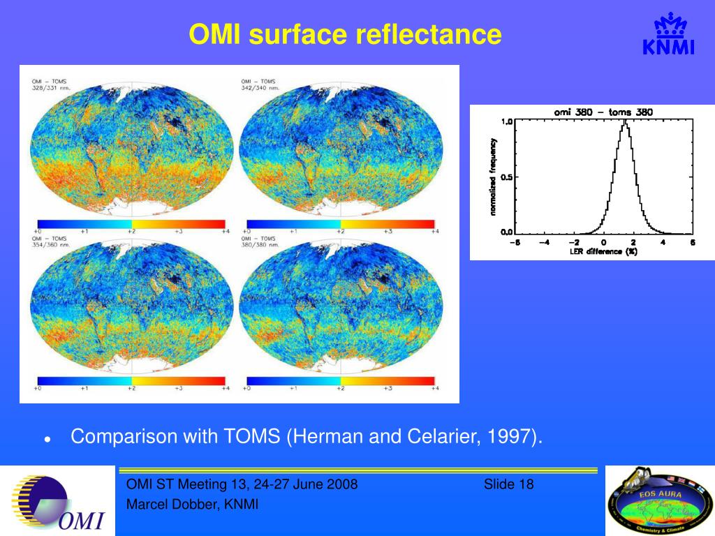 OMI surface reflectance • Comparison with TOMS (Herman and Celarier, 1997).