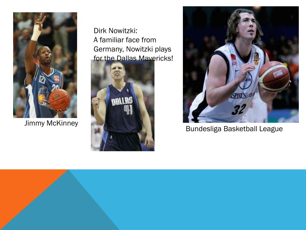 Dirk Nowitzki: A familiar face from Germany, Nowitzki plays for the Dallas Mavericks! Jimmy McKinney Bundesliga Basketball League