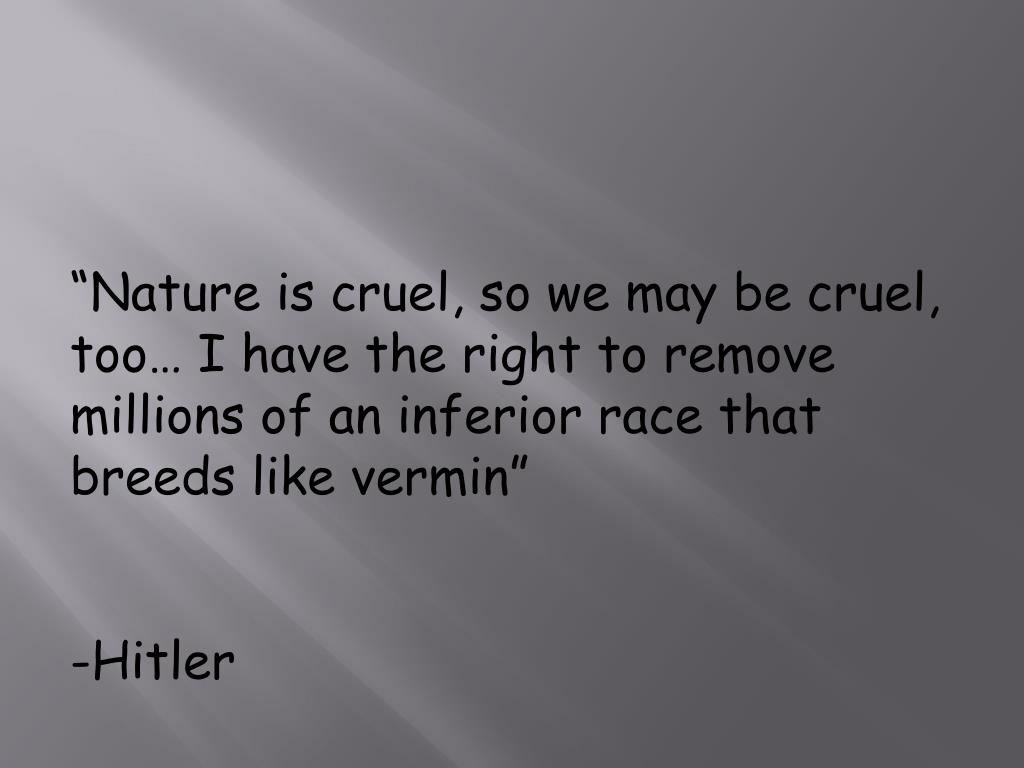 “Nature is cruel, so we may be cruel, too… I have the right to remove millions of an inferior race that breeds like vermin” -Hitler