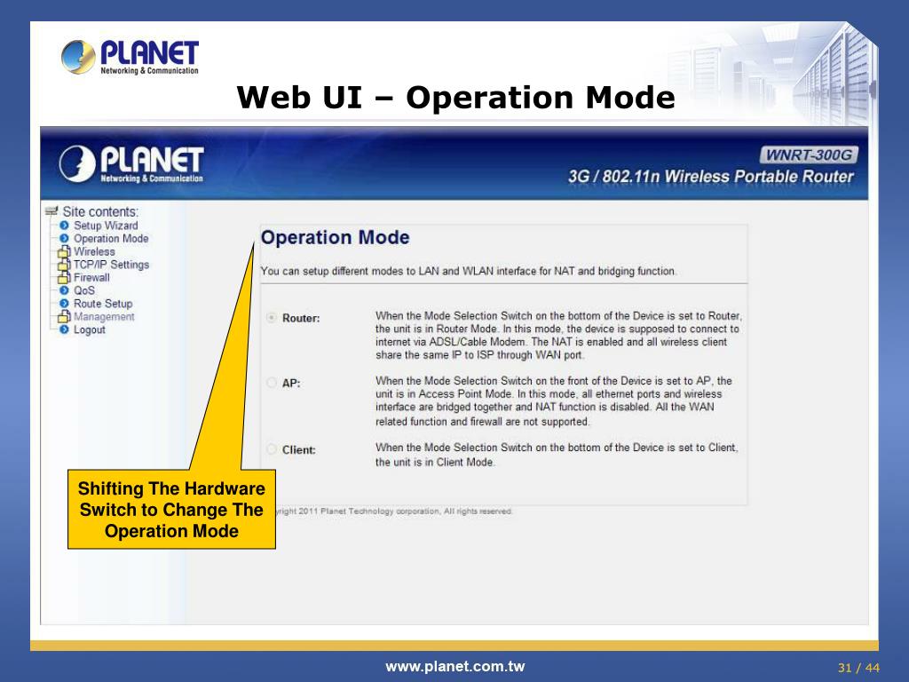 Web UI – Operation Mode Shifting The Hardware Switch to Change The Operation Mode 31 / 44