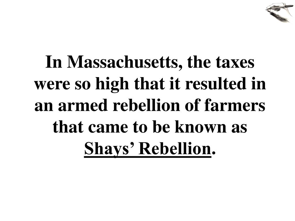 In Massachusetts, the taxes were so high that it resulted in an armed rebellion of farmers that came to be known as Shays’ Rebellion.