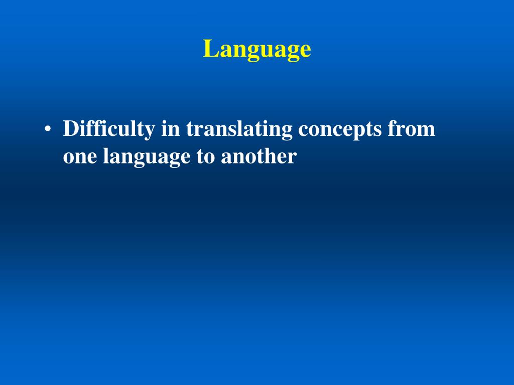 Language • Difficulty in translating concepts from one language to another