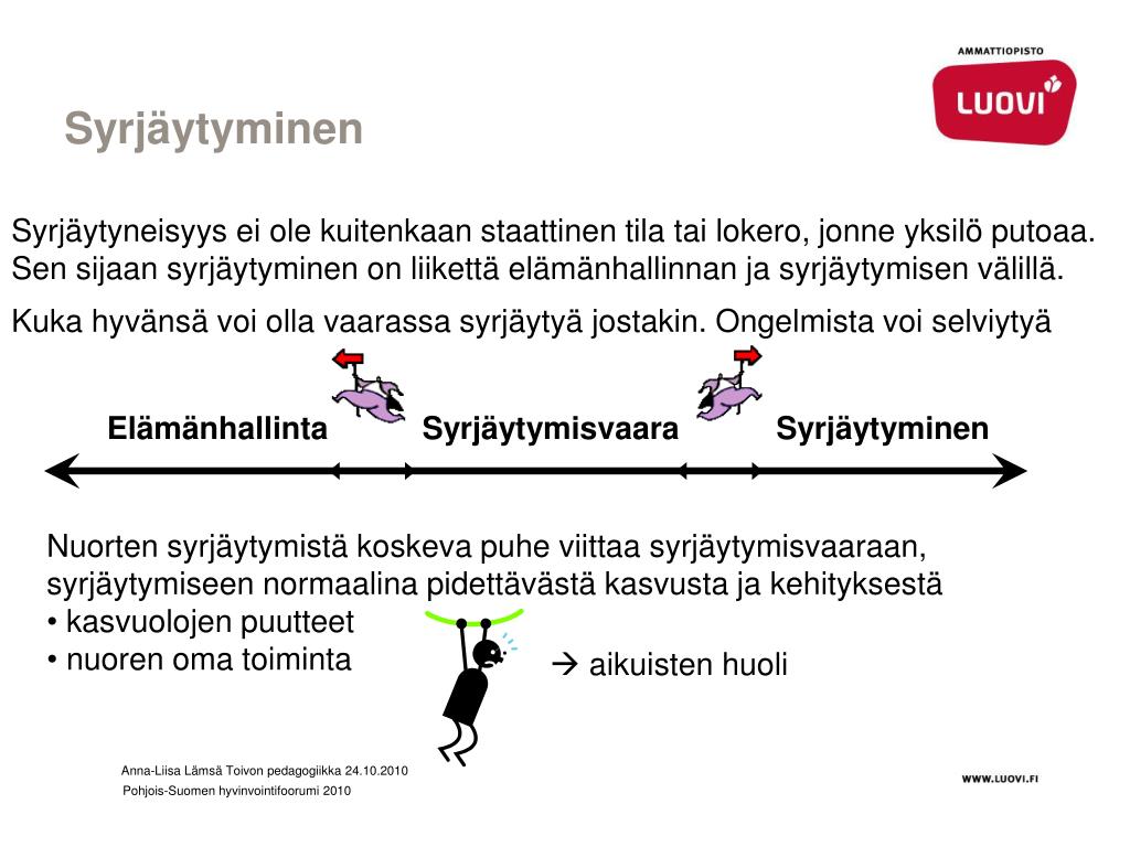 Toivon pedagogiikka. KT, tutkimuspäällikkö Anna-Liisa Lämsä Ammattiopisto Luovi. Mistä puhumme, kun puhumme syrjäytymisestä?.