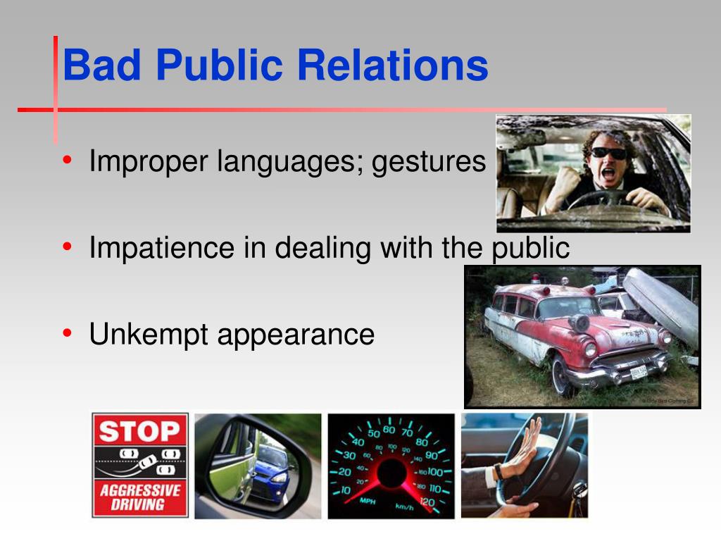 Bad Public Relations • Improper languages; gestures • Impatience in dealing with the public • Unkempt appearance