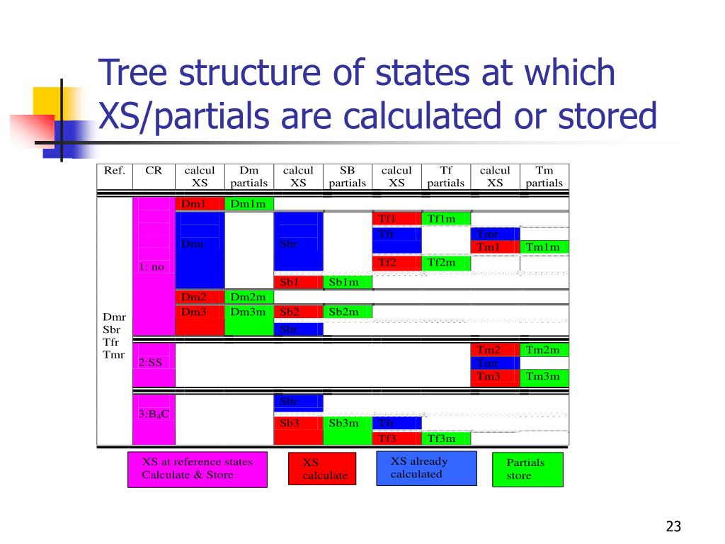 Tree structure of states at which XS/partials are calculated or stored